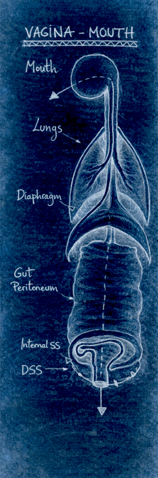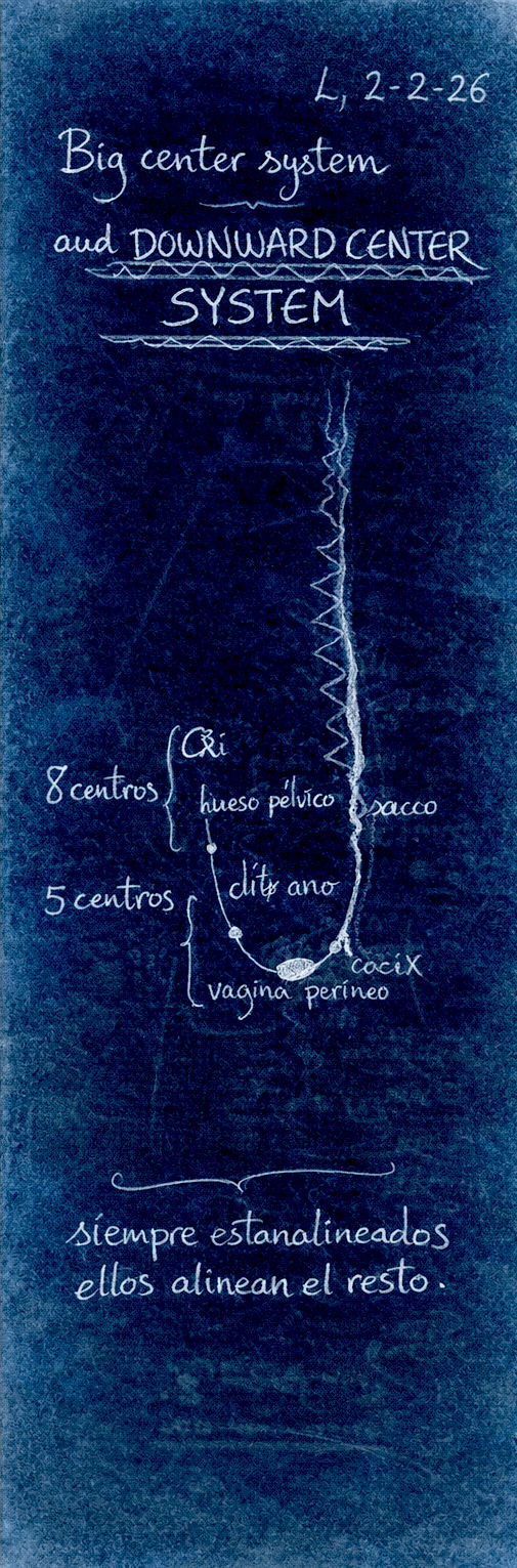 Movetouch is a somatic framework that connects holes, tubes, and different tissues through the ideas of bridge and hiatus as energetic channels. It focuses on the Downward Sexual System as a point of view of the whole body, distinguishing eight sexual centers, each relating different systems to one another. Movetouch understands the body’s relationality as non-functional and non-intentional, exploring the energies emerging from this system as more than sexual, and as holding political and somatic potential